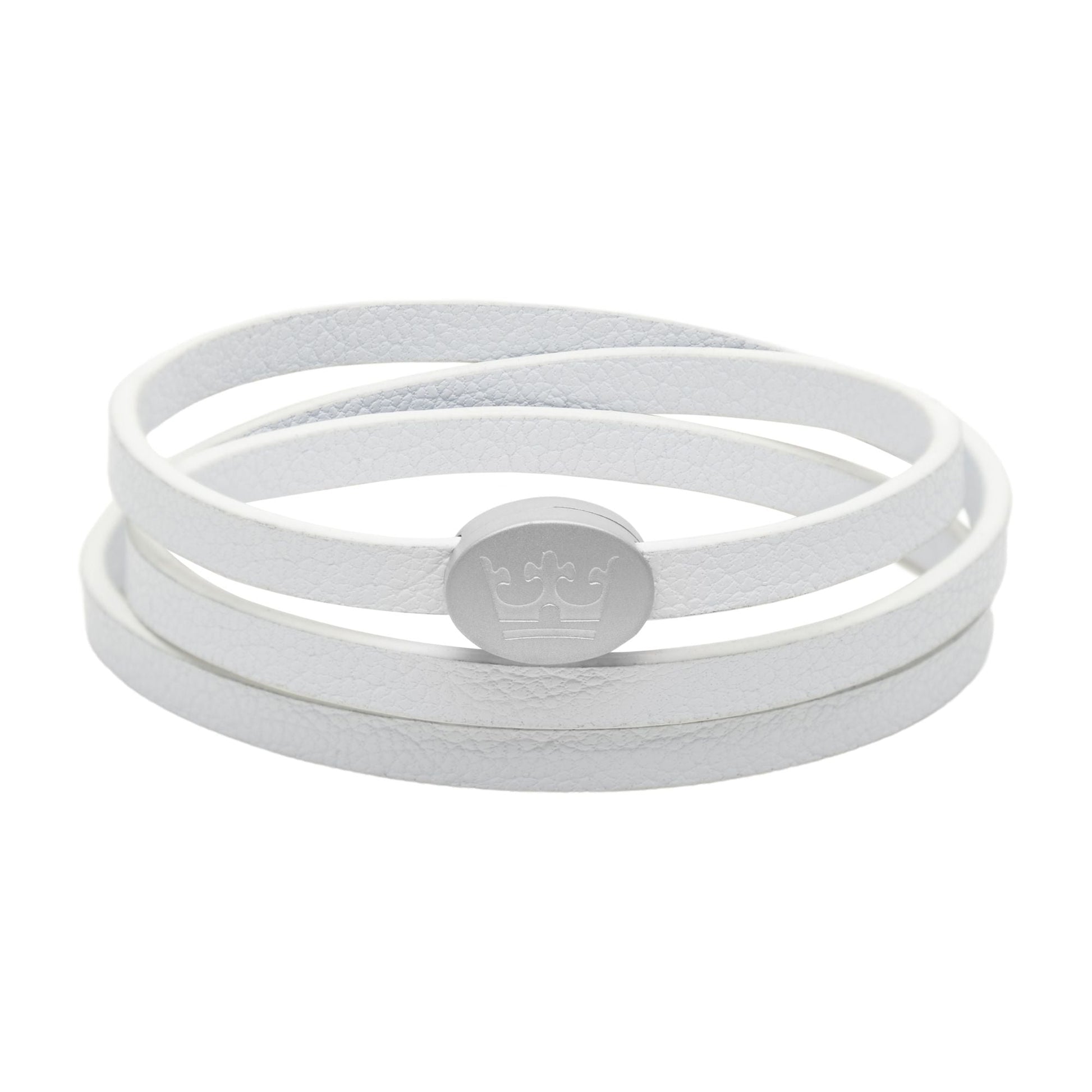 Crown Leather Wrap bracelet / necklace - Creme white matt silver plated