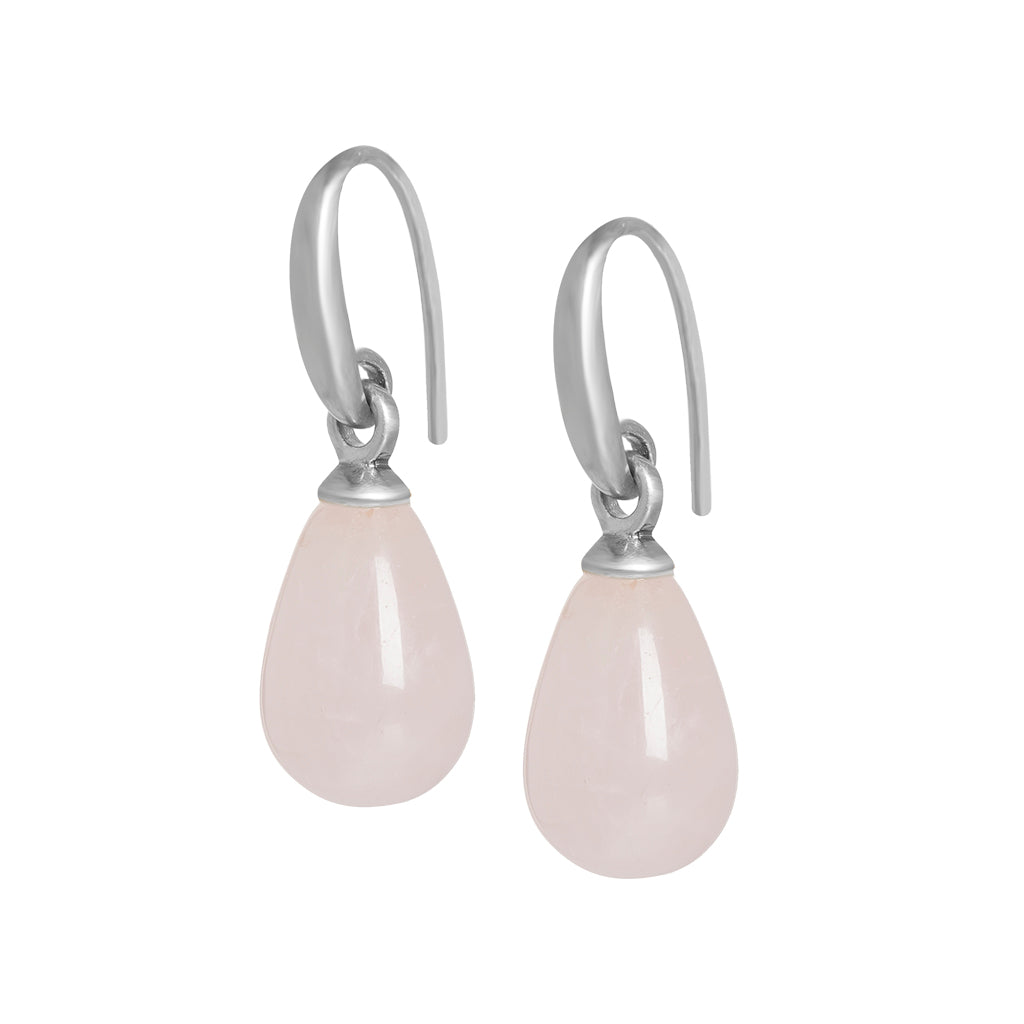 Essentials Drop earrings with Rose Quartz matt silver plated