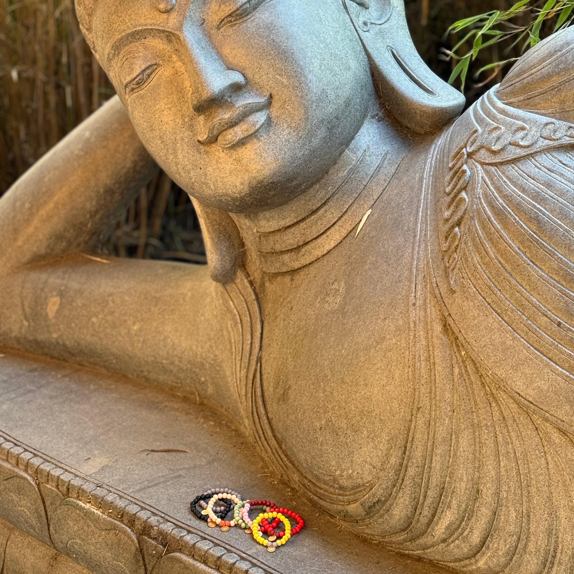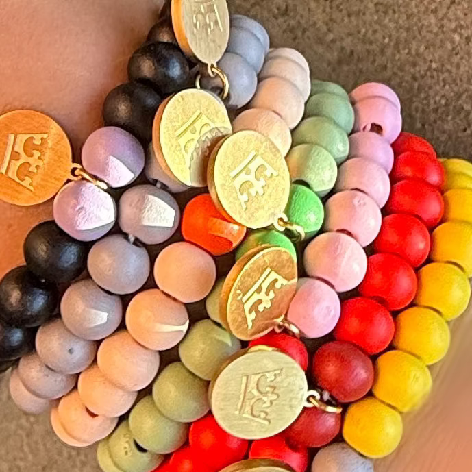 Material: Wooden beads, 18k matte gold-plated brass, nickel-, lead-, and cadmium-free.