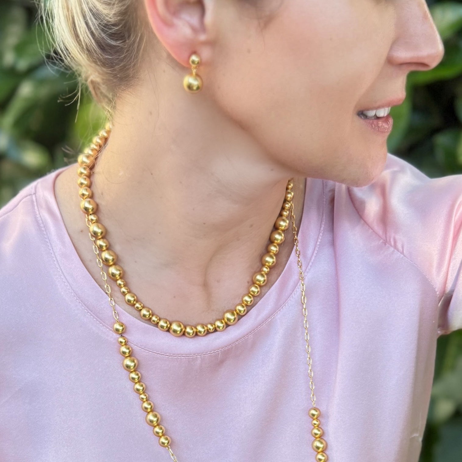 Die Dotti Ohrringe greifen das Design der gleichnamigen Ketten auf und setzen es in einer leichten, eleganten Form um. Zwei aneinander gereihte Kugeln verleihen den Ohrringen ihre klare, moderne Silhouette. Mit nur 2,5 g angenehm leicht und 2 cm Länge sind sie ideal für den Alltag wie auch für besondere Anlässe. Ein Schmuckstück, das sich harmonisch zu den Dotty Necklaces kombinieren lässt und jedem Look eine feine Note verleiht.