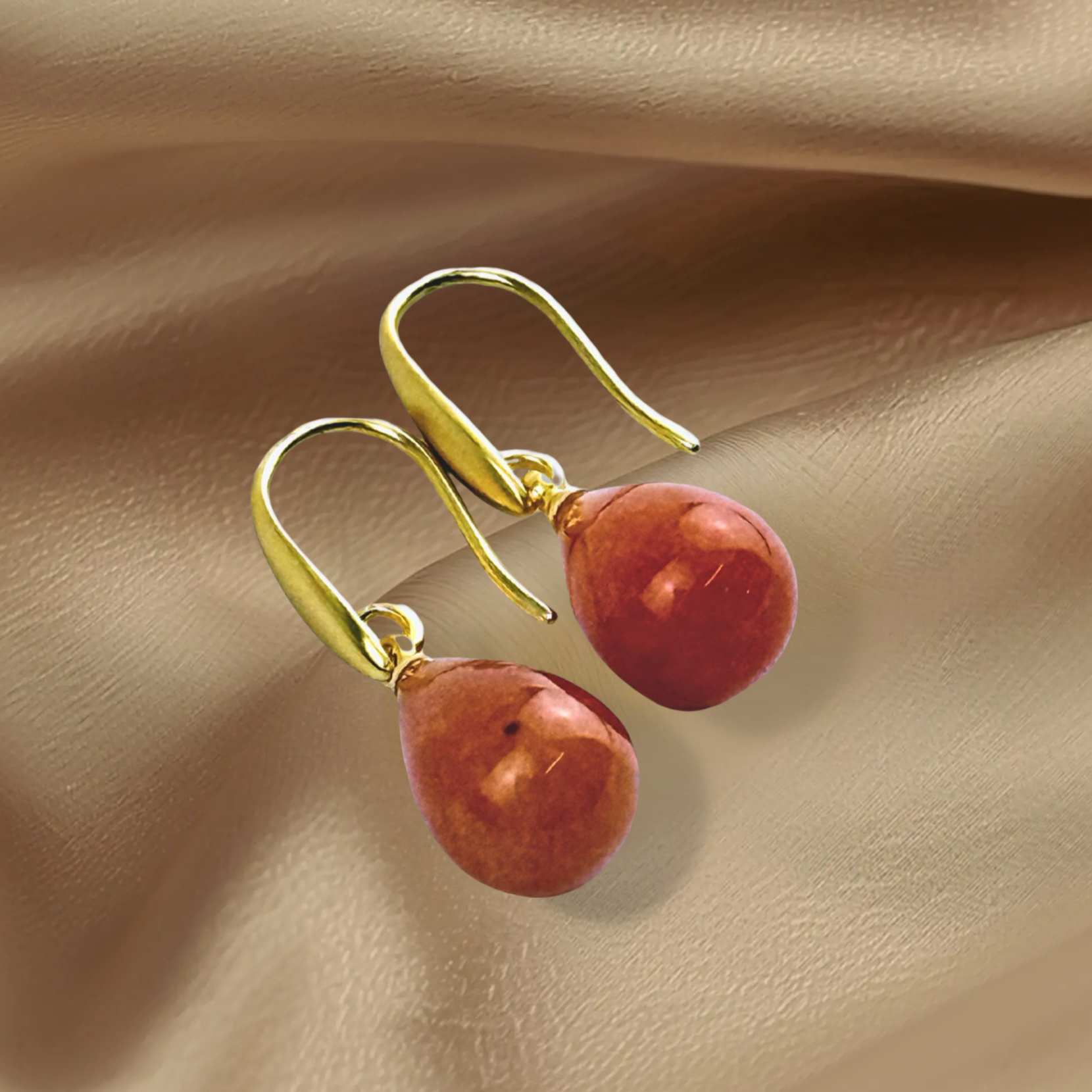 In eleganter Tropfenform gefasst, zeigen die Aventurin-Ohrringe ihre warme, orange/rötlich schimmernde Farbnuance. Der natürliche Glanz des Steins macht jedes Paar zu einem Unikat und unterstreicht seine besondere Ausstrahlung. Die schlichte Fassung hebt die Form hervor und verleiht den Ohrringen zeitlose Eleganz. Ein Schmuckstück, das Wärme und Stil in vollendeter Harmonie verbindet.