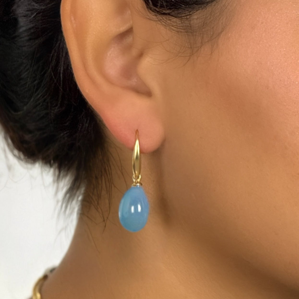 Drop Ohrringe - Aqua eingefärbte Jade matt vergoldet