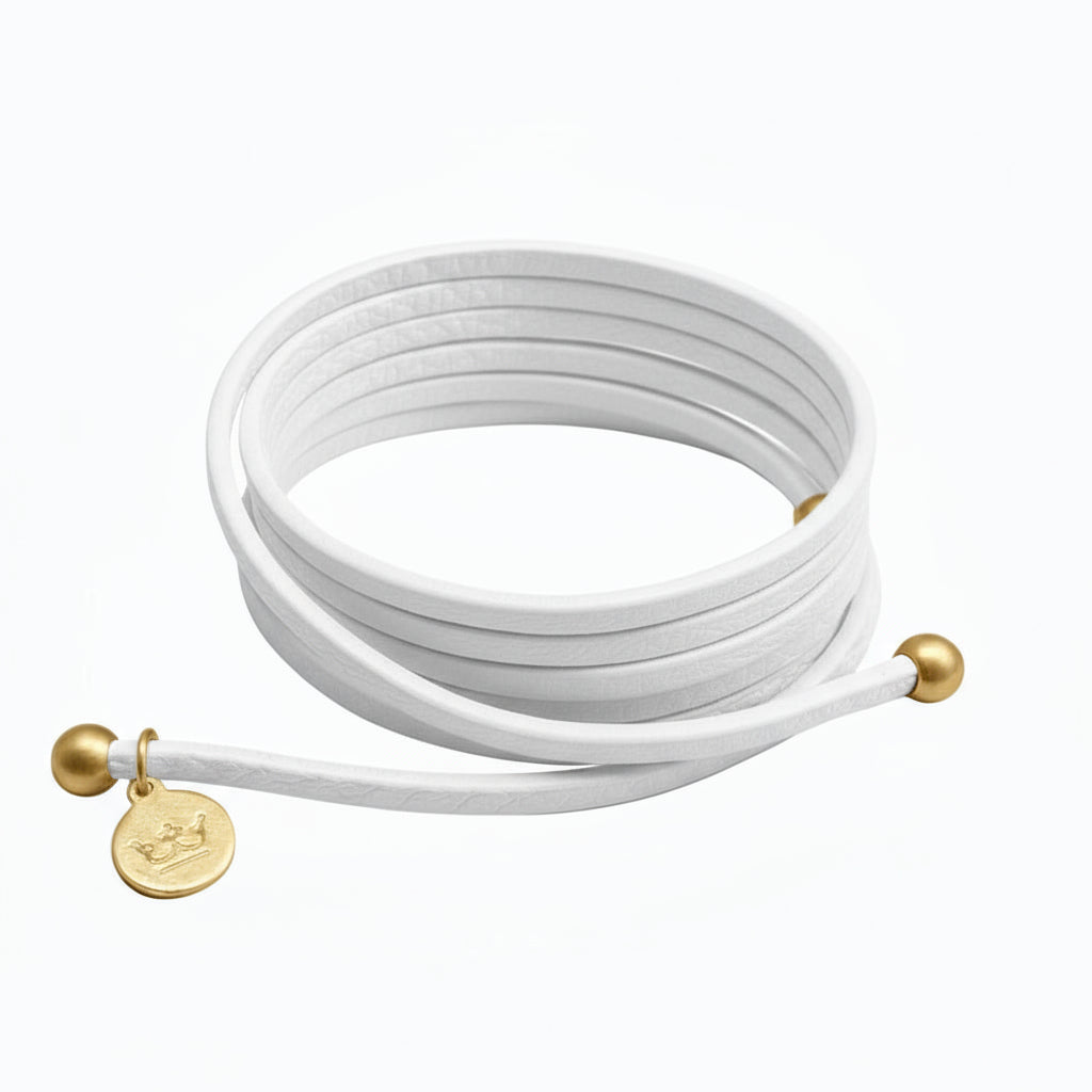 Strap Halskette / Armband - Weißes Leder matt vergoldet